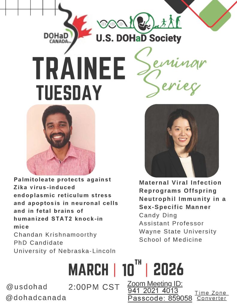 Please join us Tuesday, March 10, 2026 at 2:00 PM CST for the next Trainee Tuesday seminar, a collaboration between the US DOHaD Society and DOHaD Canada.